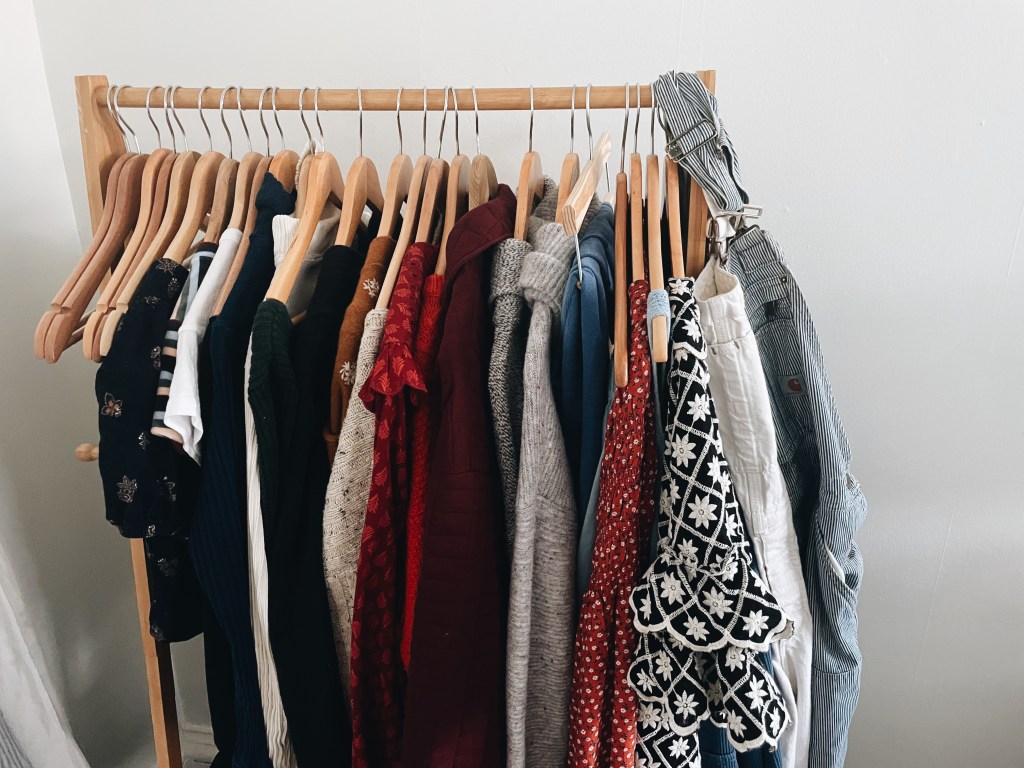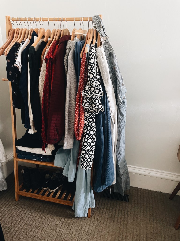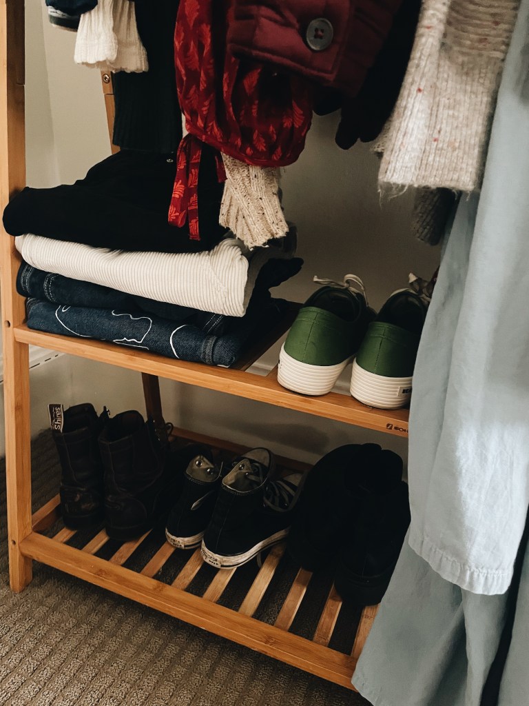 This winter capsule contains 30ish items – 5 pairs of shoes, 14 tops, 3 overalls, 6 bottoms, 2 dresses, 1 jacket. My accessory capsule remains the same across seasons, I own 4 purses, a few necklaces, earrings and rings – mostly a collection of beautiful gifts from friends and family. That is all.